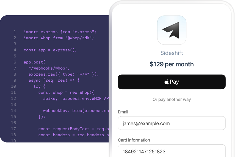 Use Whop checkout on your own custom website or app.